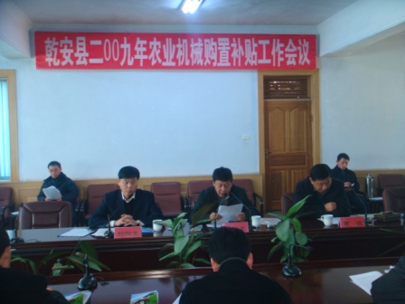 初春伊始,金龙抬头,铁牛奋蹄。2009年2月26日,乾安县在县委会议室召开了全县2009年农业机械购置补贴工作会议。乾安县副县长姚政武、政府办主任刘国文、县农机局局长曹波、财政局、农业局、各乡镇(场)主要领导及各乡镇农机技术推广站站长等50余人参加了会议。
