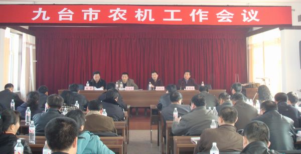 200936,九台市农机局召开全系统工作会议,参加会议的有机关全体工作人员,事直三个事业单位领导班子全体成员,16个乡镇和2个办事处农机推广站站长和各单位受表彰的先进个人参加会议。会议由副局长王德惠主持。会议第一项由党办主任倪军宣读受表彰的农机校等四个先进单位和刘伟等23名先进个人名单;会议第二项由冯成河局长、王德惠副局长、王炳孚副局长和党办主任倪军向受表彰的先进单位和先进个人颁发了奖牌和证书及奖品;会议第三项由王炳孚副局长宣读了关于各单位年度工作考核办法;会议第四项冯成河局长在全系统农机工作会议上做了抓住机遇乘势而上努力开创我市农机化工作新局面的重要讲话。回顾过去了2008年所取得的成绩,布置了2009年农机化工作。