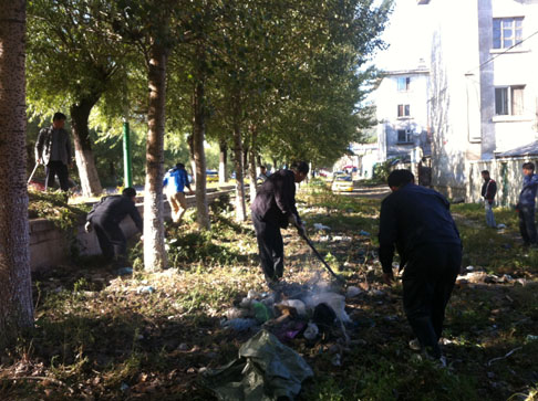 图们市农机总站于9月26日参加全市组织的机关干部义务劳动。此次义务劳动的范围是街道两旁的花坛和下面的空地,要求清除杂草和垃圾。我站全体职工积极参与义务劳动,手拿镰刀和铁锹将花坛里的杂草和空地中的垃圾集中焚烧、装袋及车辆运送到垃圾场。干部职工在劳动中挥汗如雨不怕天气炎热,脏、乱、差、尘土飞扬的环境,全心身的投入劳动中,一下午的时间将所分管的区域清理完成,符合要求达到标准。
